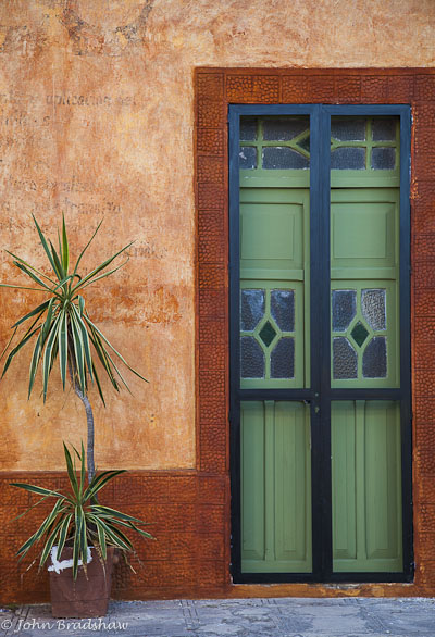 There are many old colonial-stile homes in the Centro Histórico of Mérida, Yucatán that have been renovated by extranjeros (foreigners), but the often abandoned or still occupied homes of the local people offer a glimpse of the former splendor of this historical city. The changing colors of many of the homes, over decades, have faded and blended into the soft tropical colors of the Yucatán. It is these architectural details that I choose to photograph.